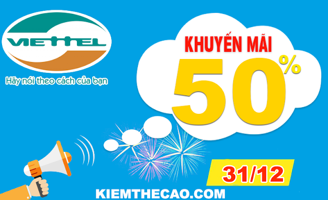 Viettel khuyến mãi tặng 50% thẻ nạp ngày vàng 31/12/2017